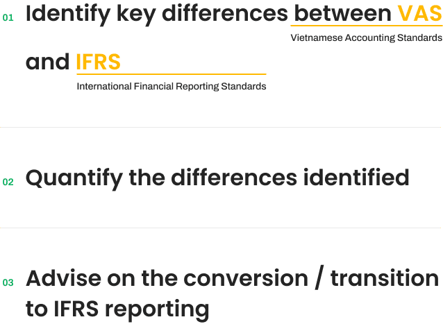 Assistance in impact assessment. This can assist companies in planning ahead for changes in VAS / IFRS before and as they happen rather than being caught by surprise