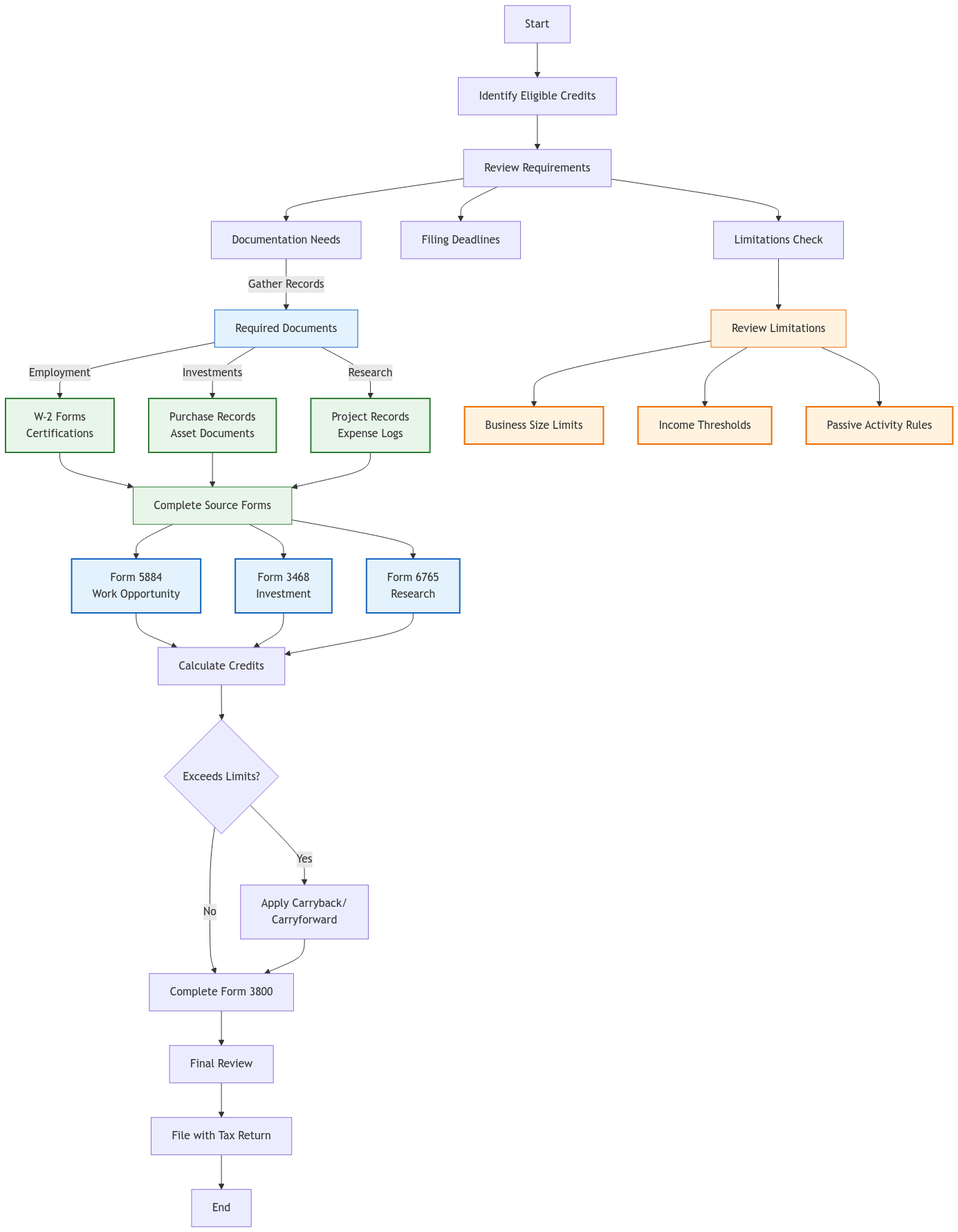 1. Identify Eligible Credits: Research and determine which credits your business qualifies for.