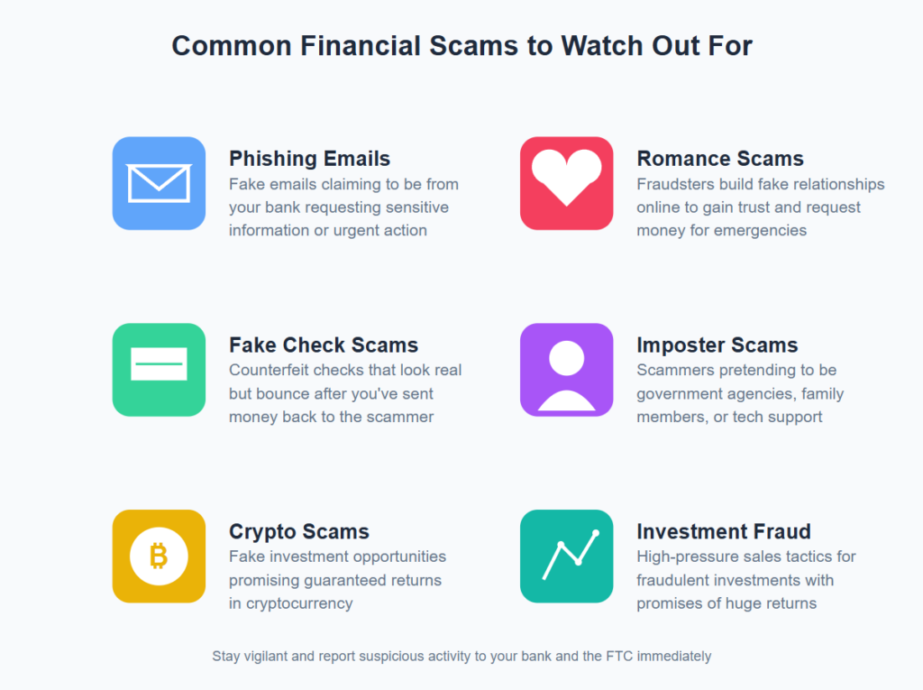 • Keep Your Information Private: Never share your account numbers, PINs, passwords, or Social Security number with anyone who contacts you unexpectedly. Your bank will never ask for this information over the phone or via email.